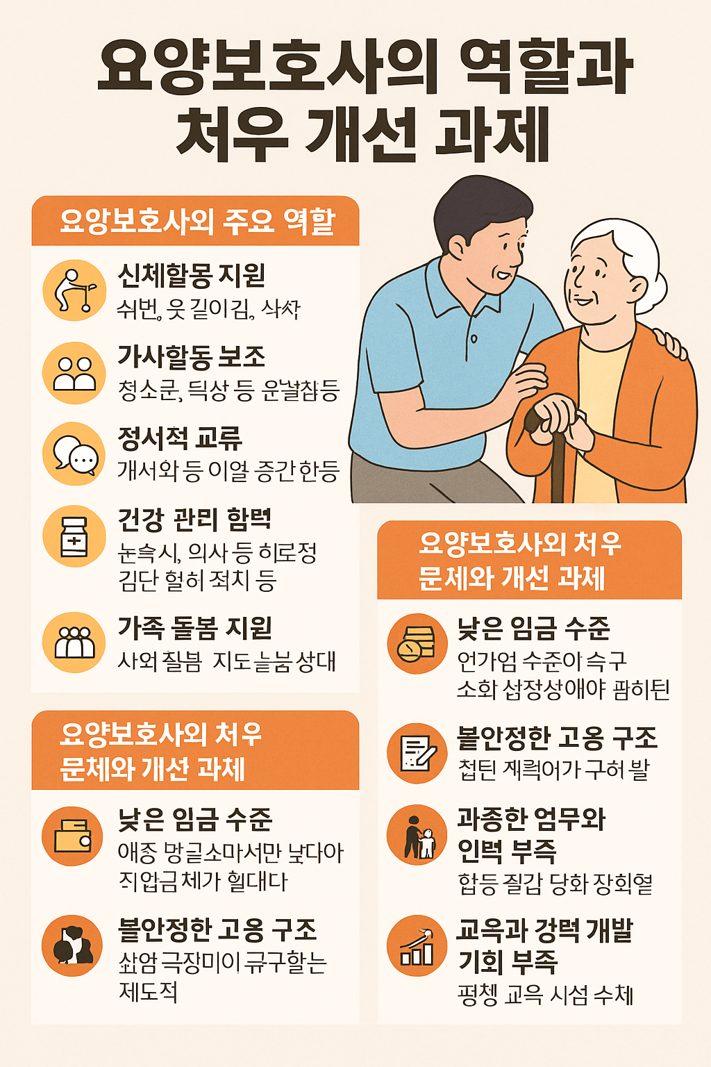 요양보호사는 단순히 서비스를 제공하는 인력이 아니라, 어르신의 삶의 질과 직결된 핵심 전문가다. 그들의 처우가 개선되어야 장기요양보험 제도가 안정적으로 운영되고, 궁극적으로 노인과 가족 모두가 만족할 수 있는 돌봄 체계가 마련될 수 있다.