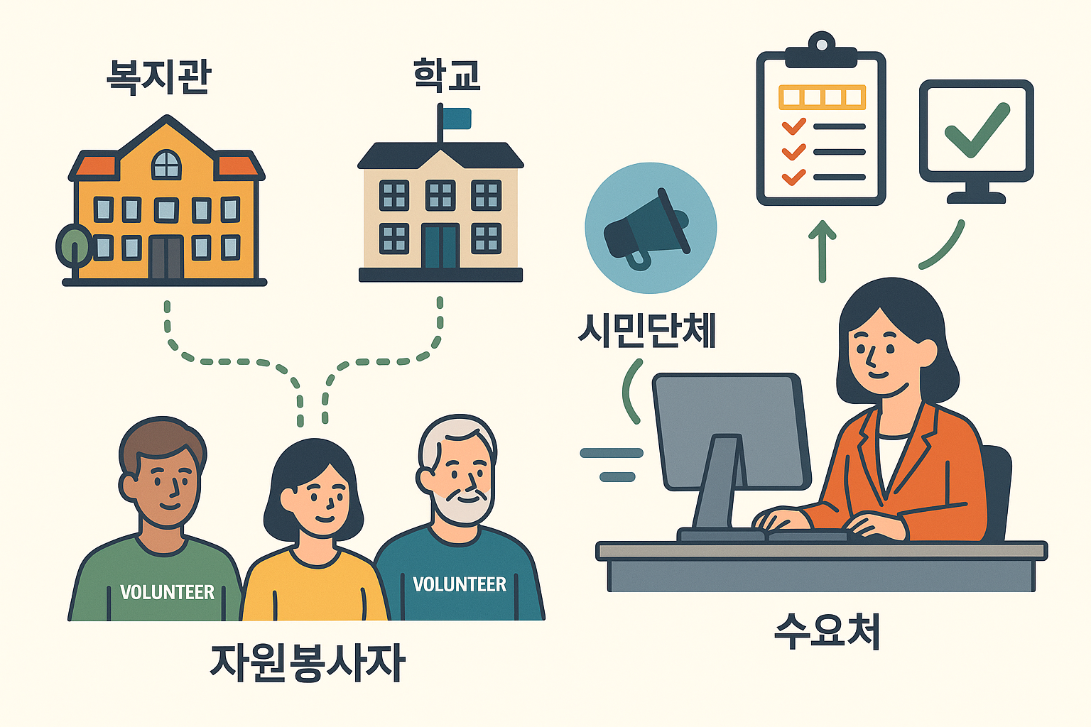 자원봉사 활동이 원활하게 이루어지기 위해서는 '봉사자' 못지않게 '수요처'의 존재가 중요하다. '수요처'란 자원봉사자를 필요로 하고, 봉사활동을 요청 및 관리하는 기관이나 단체를 의미한다. 쉽게 말해, 자원봉사 활동이 일어나는 '현장'이 바로 수요처인 셈이다. 봉사자가 있어도 수요처가 없다면 활동은 이루어질 수 없고, 반대로 수요처만 있고 봉사자가 없다면 사회참여는 공허한 구호로만 남는다. 따라서 수요처는 자원봉사 생태계의 핵심 구성 요소로, 봉사자의 참여를 이끌어내고, 효과적인 활동이 이루어질 수 있도록 돕는 플랫폼 역할을 수행한다. 이 글에서는 수요처의 개념과 역할, 등록 조건, 운영 관리법, 그리고 자원봉사 실적과의 연결고리까지 종합적으로 살펴보며, 자원봉사를 계획하거나 운영하는 기관·단체에게 실질적인 정보를 제공하고자 한다.